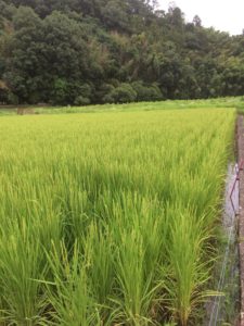 ポポ農園のお隣は田んぼで、稲が大きく育っています。
