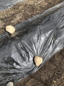 活用法に悩みましたが、黒マルチが飛ばないように重石代わりに使用することにしました。