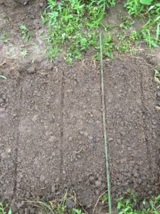 小さな均一な溝をつくる必要があります。小さな溝を作るコツは支柱を畝に押し付けると簡単にできます。)
