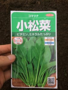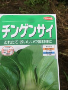 次は春菊の隣にチンゲン菜を蒔いていきます。チンゲン菜はこんな種です。
