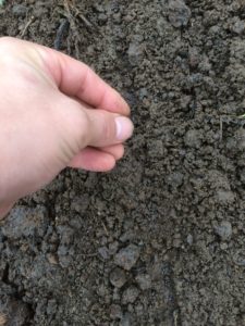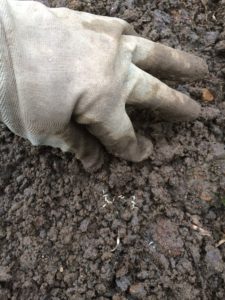 次は土を薄く被せますが写真のように親指と人差し指を使います。