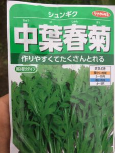 次に小松菜の隣に春菊を蒔いていきます。春菊はこんな種です。