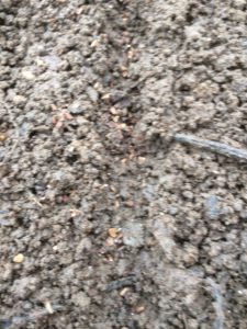 先ほど同じく、溝にパラパラと蒔いていきます。