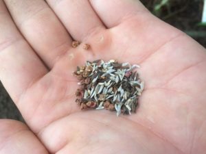 チンゲン菜の隣にリーフレタスを蒔いていきます。リーフレタスの種はこんな種です。