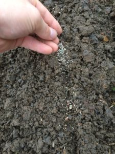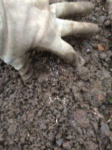 溝にパラパラと蒔いていきます。