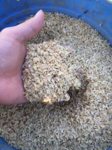 そこで籾殻(もみがら)をまきます。