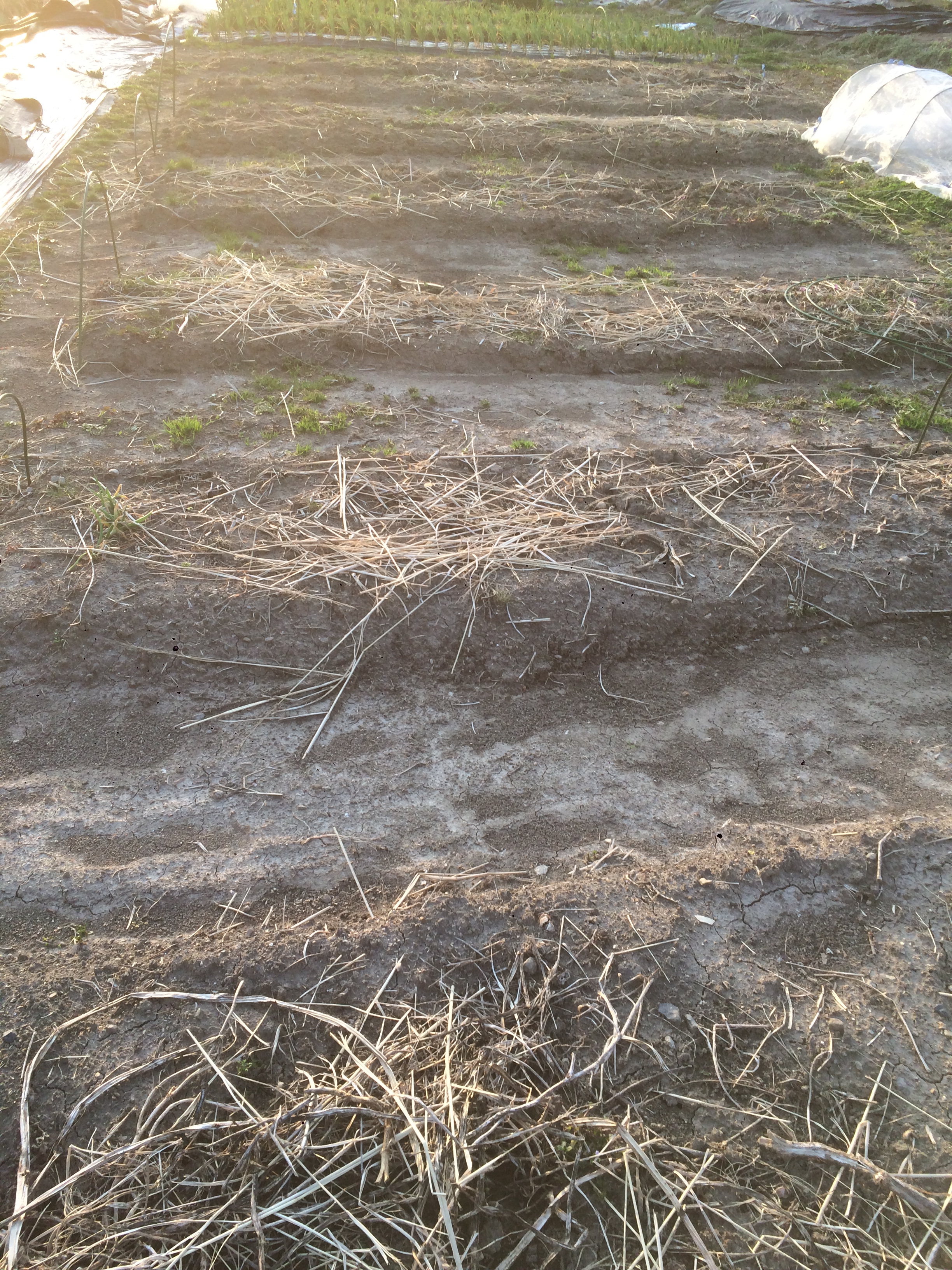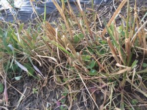 緑肥作物を刈り、畝や畦に敷いていきます。