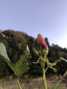 寒いと枯れやすいオクラですが、花が咲きそうでしたので驚きました。