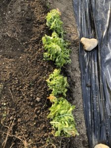 生育、形の良い物を選別して採種するために土中に植えます。
