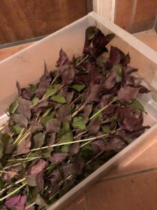 赤紫蘇を収穫しました。鮮やかな色で綺麗です。
