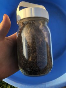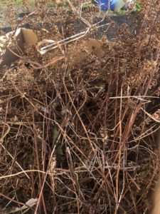 刈った後は、バケツに入れ、茎と種の部分を分けます。