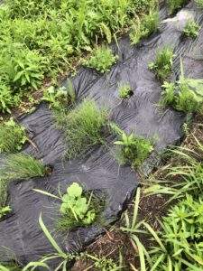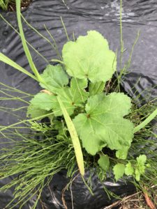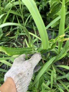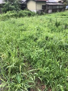 こちらも里芋と同様、雑草と一緒に順調に生長しています。