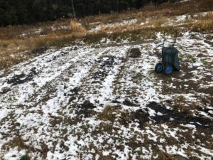 最近、初雪が降り、畑の景色が一層に変わりました。