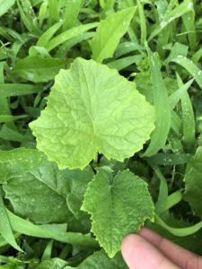 つるありインゲン(赤花豆)とキュウリの生長を確認しました。
