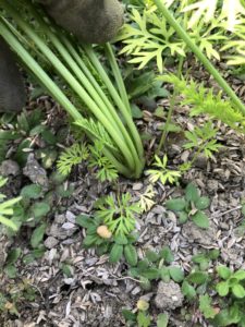 葉を見て大きいなと感じたら、掘って確かめます。その時、4~5cm程度だったら収穫していきます。
