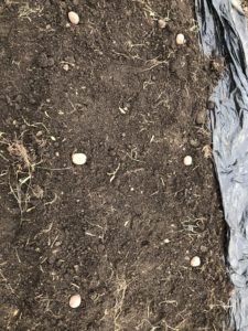 秋ジャガイモは切らず丸ごと植え付けます。