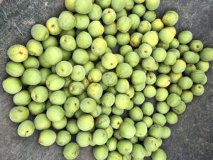 おばあちゃんの庭に青梅がなっていまして、その収穫のお手伝いをしました。