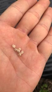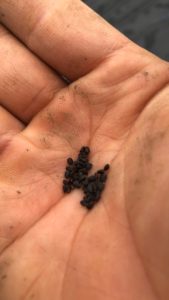 トマトとは違う好光性種子なため少し多めに蒔いていきます。