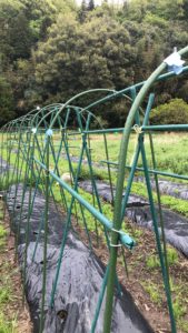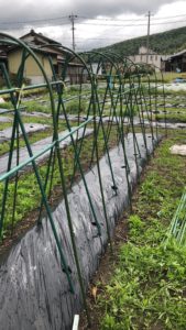 幅130cm 畝幅100cm 3条植え(両端トマト 真ん中インゲン) 条間30cm 株間40cm