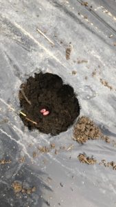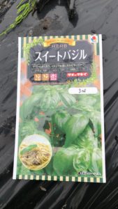 本来トマトの近くに蒔くのですが、今回は同じ穴に蒔きます。