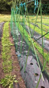 キュウリの間にインゲンを蒔いていきます。